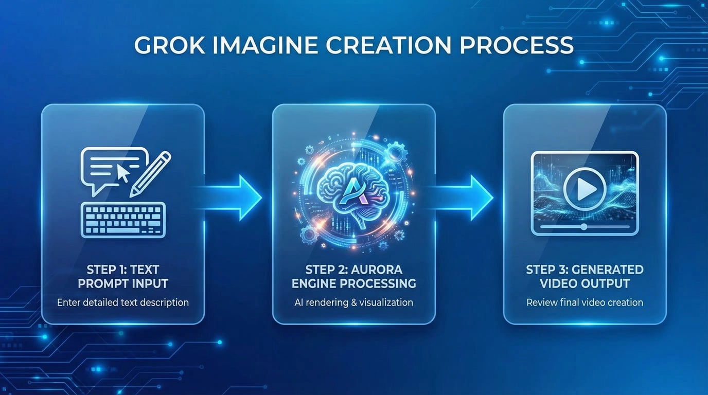 Weil Bild, Bearbeitung und Video in derselben Modellfamilie zusammenkommen, bleibt mehr visuelle Vorarbeit in einem einzigen Ablauf. Wenn Sie dafür einen direkteren Einstieg im Browser wollen, ist Grok Video Generator ein praktischer Zugang zu Text-zu-Video und Bild-zu-Video mit Grok Imagine.
